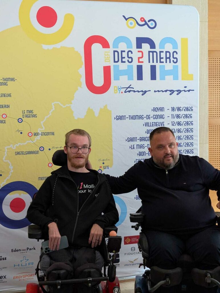 Tony Moggio est devenu tétraplégique à la suite d’un accident de rugby et pourtant un acteur infatigable du sport adapté et de la sensibilisation. Entrepreneur, Tony organise des conférences en entreprise sur le handicap, la reconstruction et l’optimisme, et monte des défis sportifs pour inspirer. À travers ce projet il veut transmettre un message fort : continuer d’avancer malgré le handicap, en s’appuyant sur un réseau de partenaires et de bénévoles. Parmi eux, les étudiants Matthieu Robin et Karen Kouamé de l’ETPA se sont mobilisés pour l’étape de Toulouse. Tony évoque notamment l’ambition de nager de Royan à Sète en juin 2026, toujours « à la force de ses bras », autant d’étapes d’un parcours de résilience. « Je ne marche plus, mais j’avance toujours » T. Moggio.