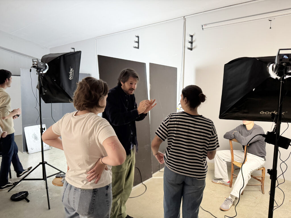 L’un des axes forts du workshop résidait dans la gestion du temps limité. Yann a proposé aux étudiants de répondre à de véritables commandes de portraits, avec des délais restreints, simulant les conditions de production d’une séance en agence ou en commande éditoriale. Cette approche pédagogique favorise l’efficacité, l’instinct visuel et la capacité à trouver une signature esthétique personnelle.