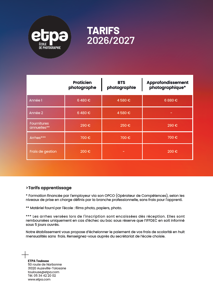 Découvrez les frais de scolarité pour l’Approfondissement Photographique à l’ETPA, une formation reconnue pour son excellence dans la photographie et son titre certifié RNCP de niveau 6.